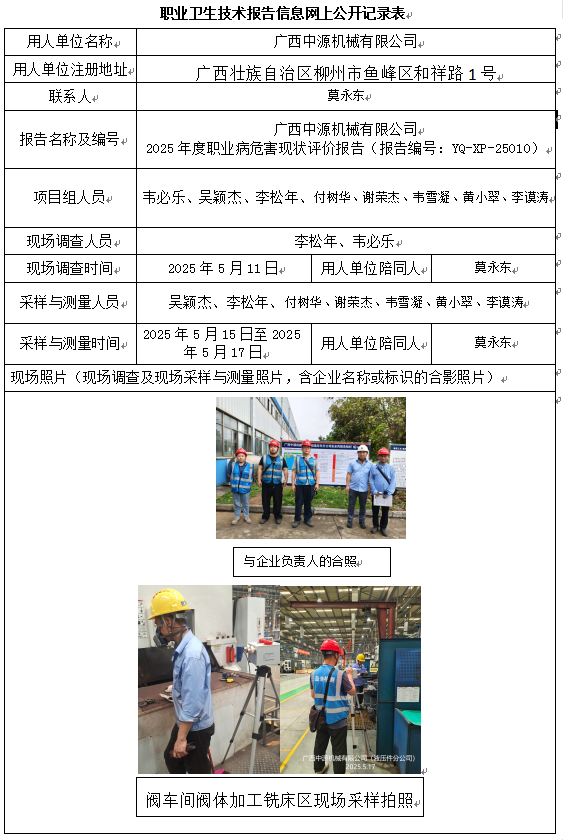 廣西中源機(jī)械有限公司2025年度職業(yè)病危害現(xiàn)狀評(píng)價(jià)報(bào)告