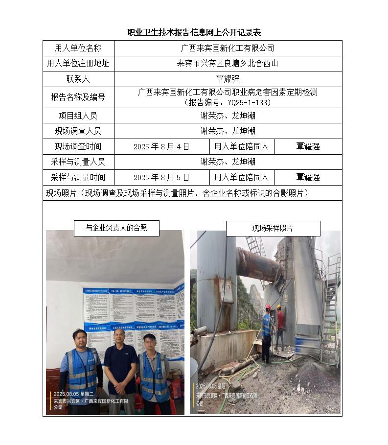 廣西來(lái)賓國(guó)新化工有限公司職業(yè)病危害因素定期檢測(cè) (報(bào)告編號(hào):YQ25-1-138)